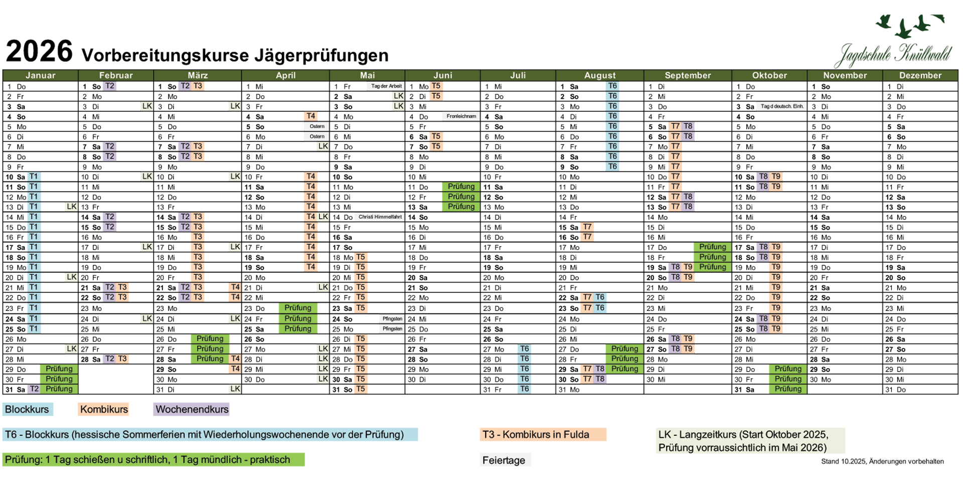 Vorab ist ein eigenes intensives Selbststudium nötig! Dann folgen acht Wochenenden und zusätzliche Tage Intensivschulung durch die Jagdschule. Dann sind Sie dann perfekt auf die Prüfung vorbereitet.